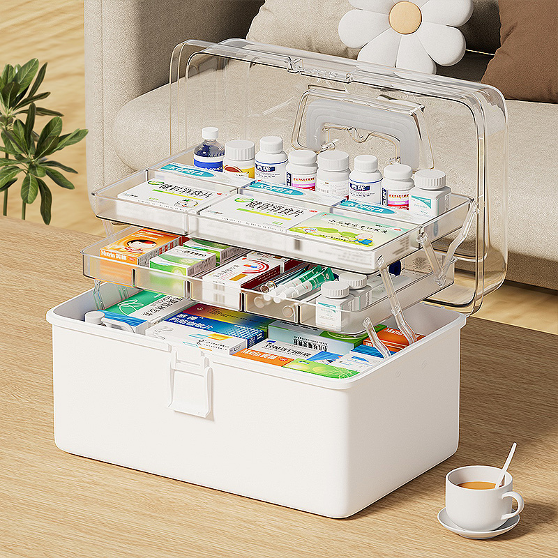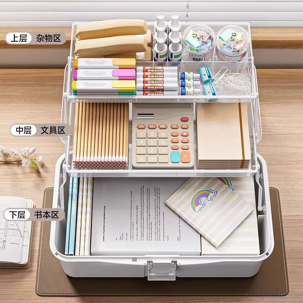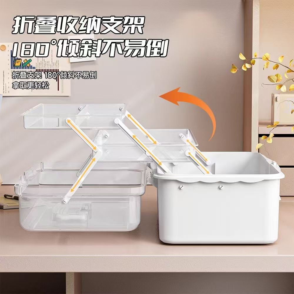 美术生工具收纳盒文具盒三层双层折叠手提式多功能家用收纳盒大容量药箱化妆品收纳箱多层收纳盒化妆箱子美甲
