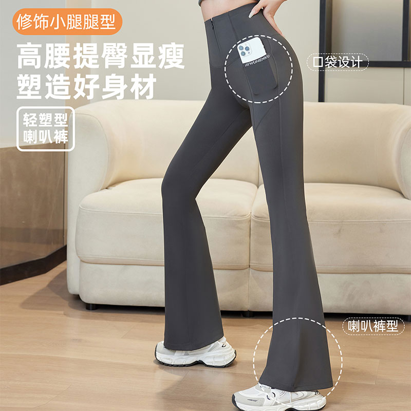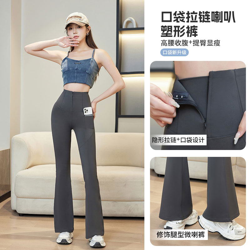 【蜜蜂欢乐社】茵可可塑形裤女拉链款高腰提臀收腹弹力显瘦喇叭裤