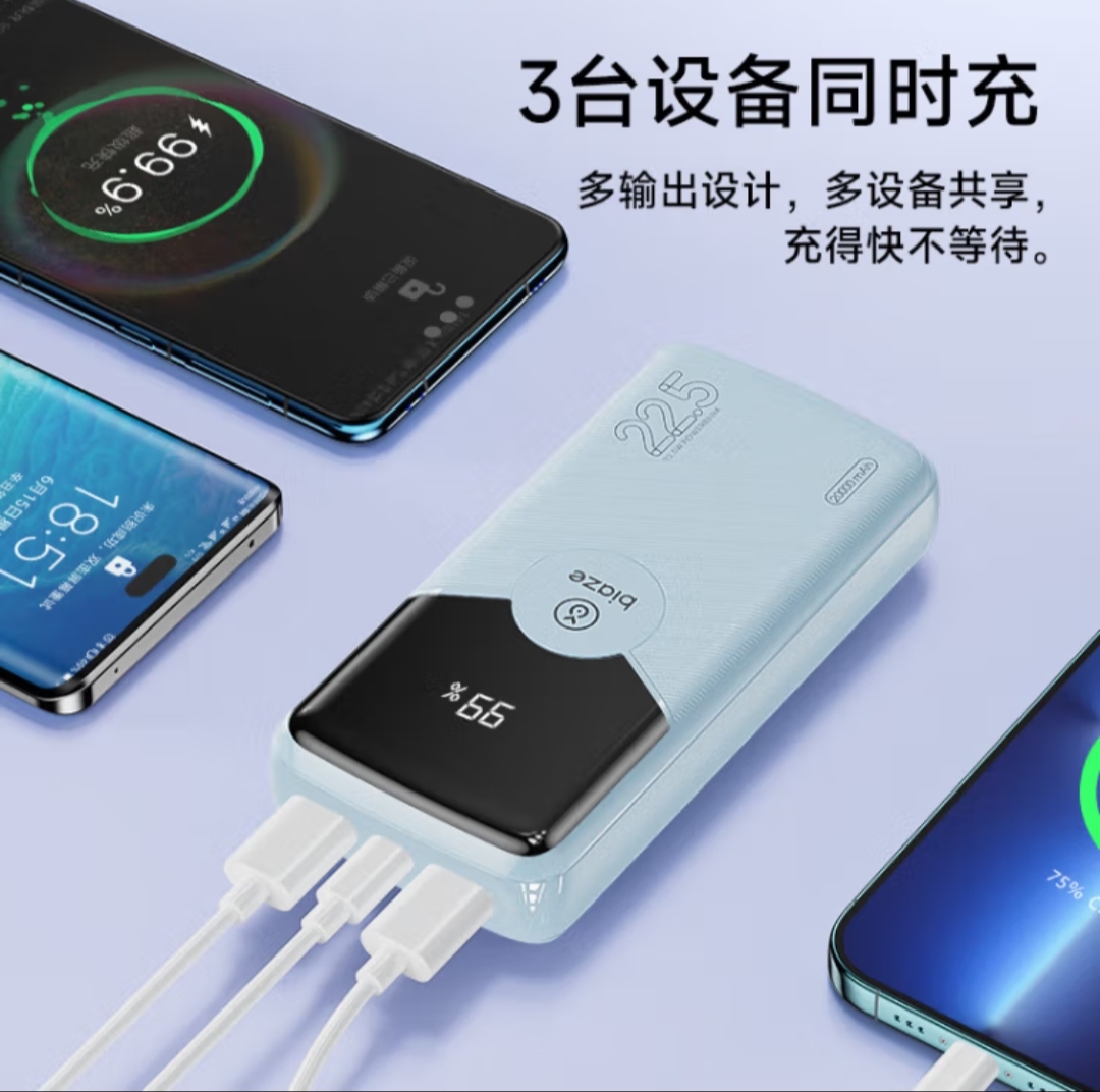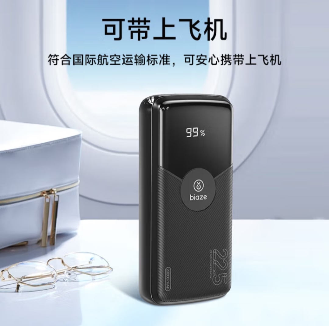 毕亚兹 3C认证充电宝20000毫安时22.5W超级快充 大容量移动电源
