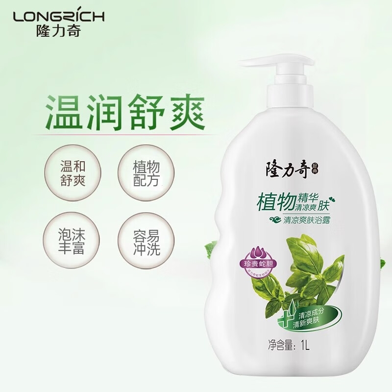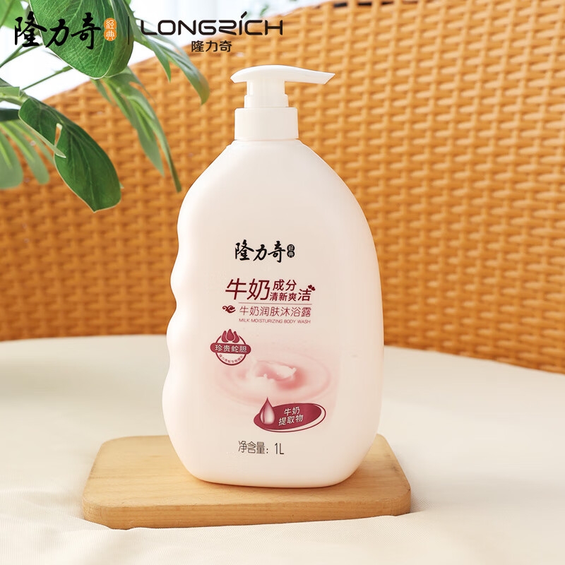 隆力奇沐浴露老牌国货牛奶润肤绵密泡沫温和洁净家庭装大容量1L