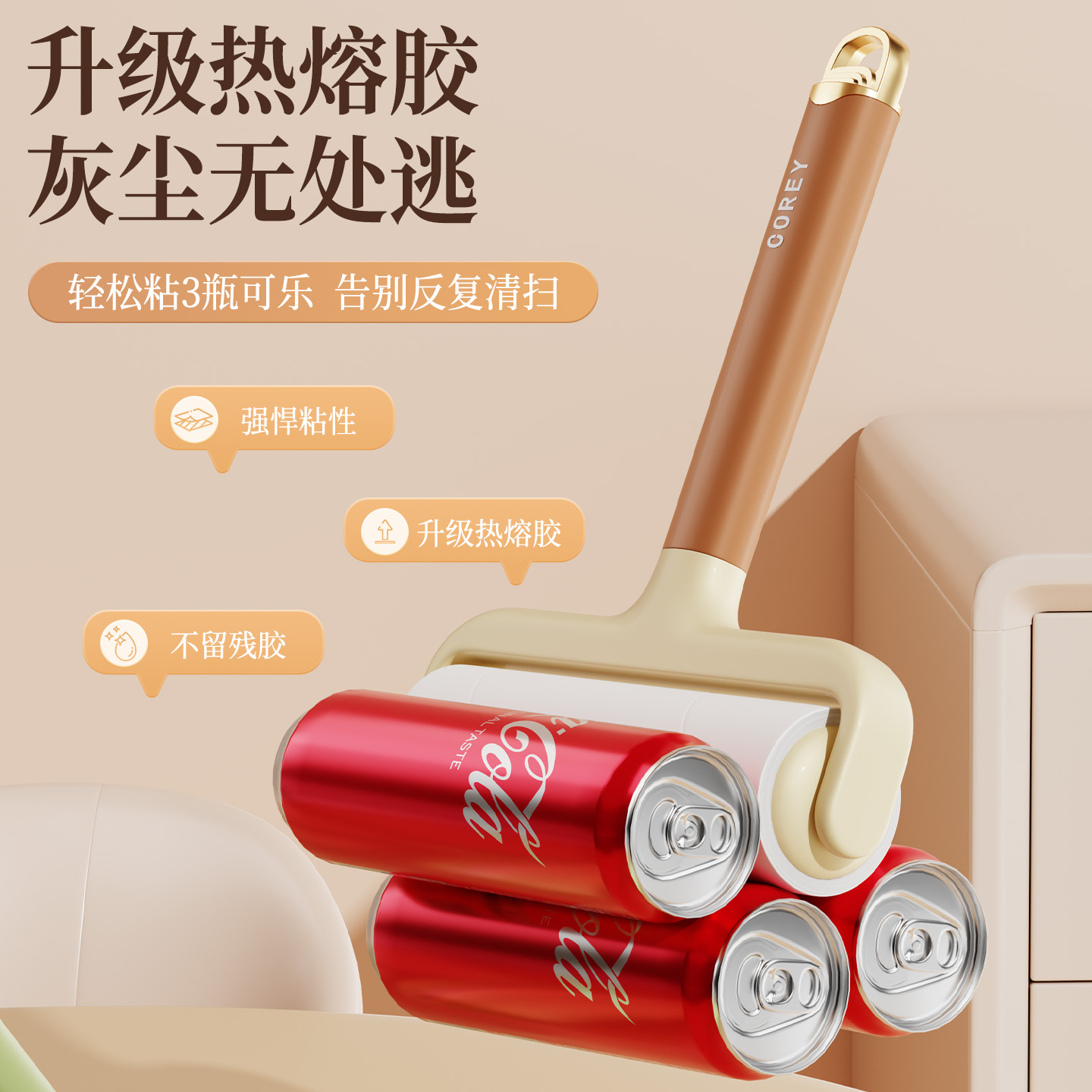 粘毛器滚筒加大可撕式替换纸粘猫毛专用滚刷衣服床上头发清理神器