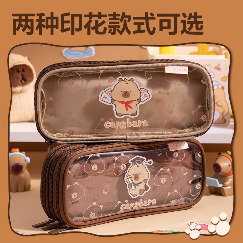 得力卡皮巴拉痛笔袋三拉链大容量收纳笔袋可爱小学生铅笔盒初中生童趣收纳包化妆包