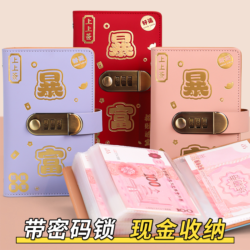 现金存钱本2025新款存钱夹钱册本暴富密码锁钱包可放现金大容量收纳册袋人民币纸币收藏册一万元10万理财神器
