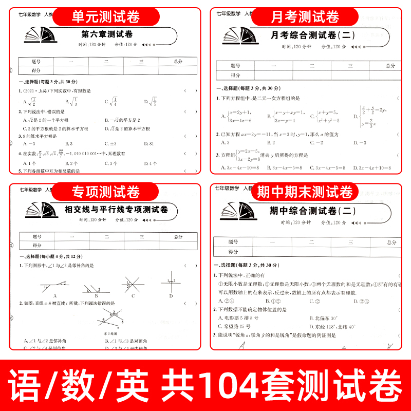 初一上下册全套试卷同步练习册必刷题七年级下册测试卷数学人教版初中道德与法治语文英语历史小四门卷子配套语数英综合基础地理