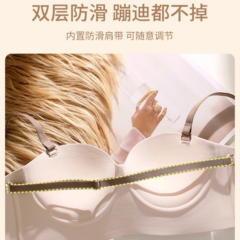 小辣代言菇娘家稳稳杯无肩带内衣女大胸美背抹胸防滑聚拢无痕文胸