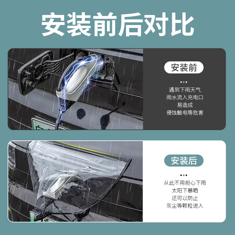 汽车新能源充电枪电车充电口防雨罩防水罩加厚加大双磁条吸魔术贴