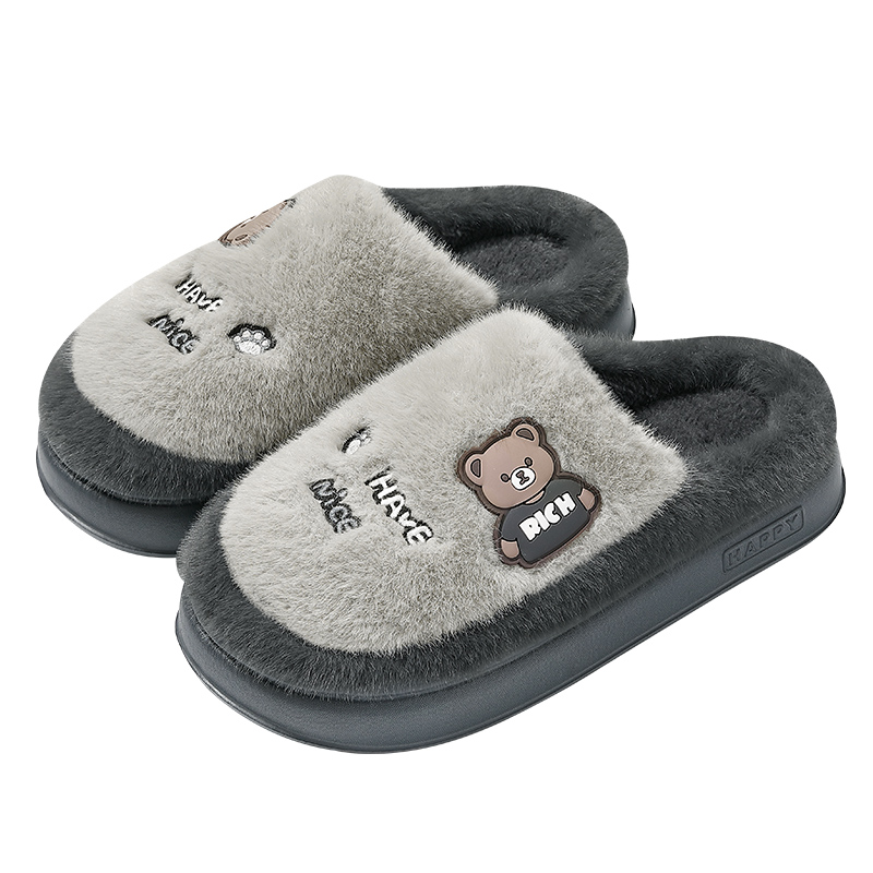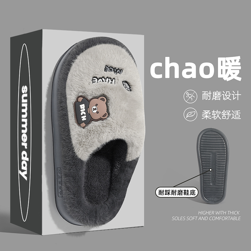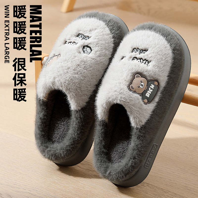 红豆棉拖鞋男士秋冬季室内居家厚底防滑保暖毛绒绒情侣家用女款