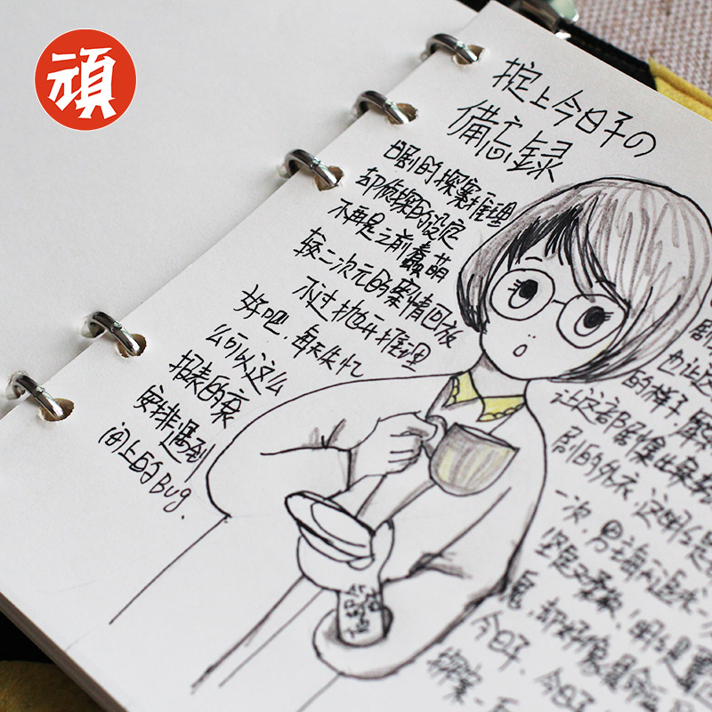 顽创意 正方形非标准b6记事本活页本内页空白网格横线计划黑卡牛皮纸替芯6孔活页纸替换本芯(7款可选)