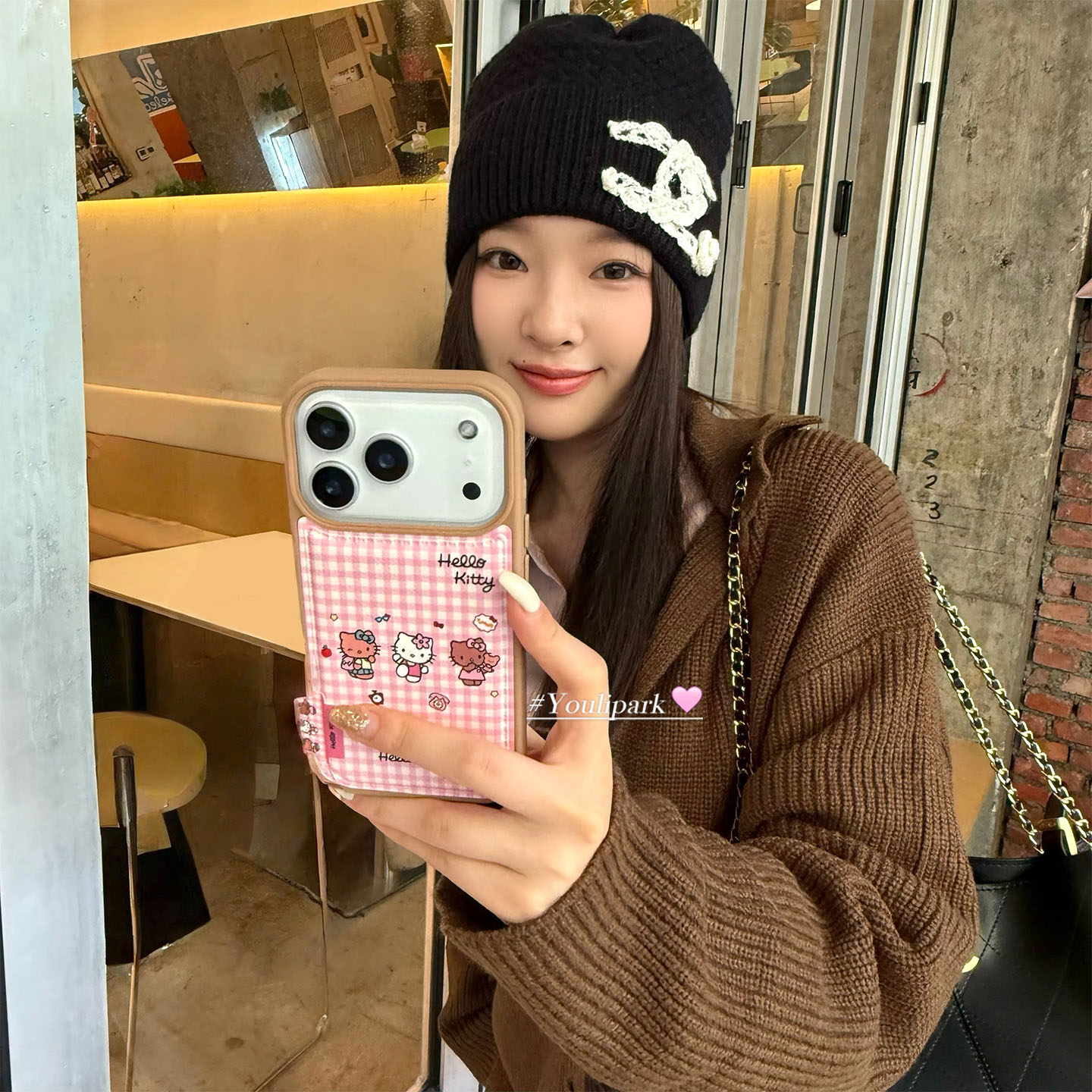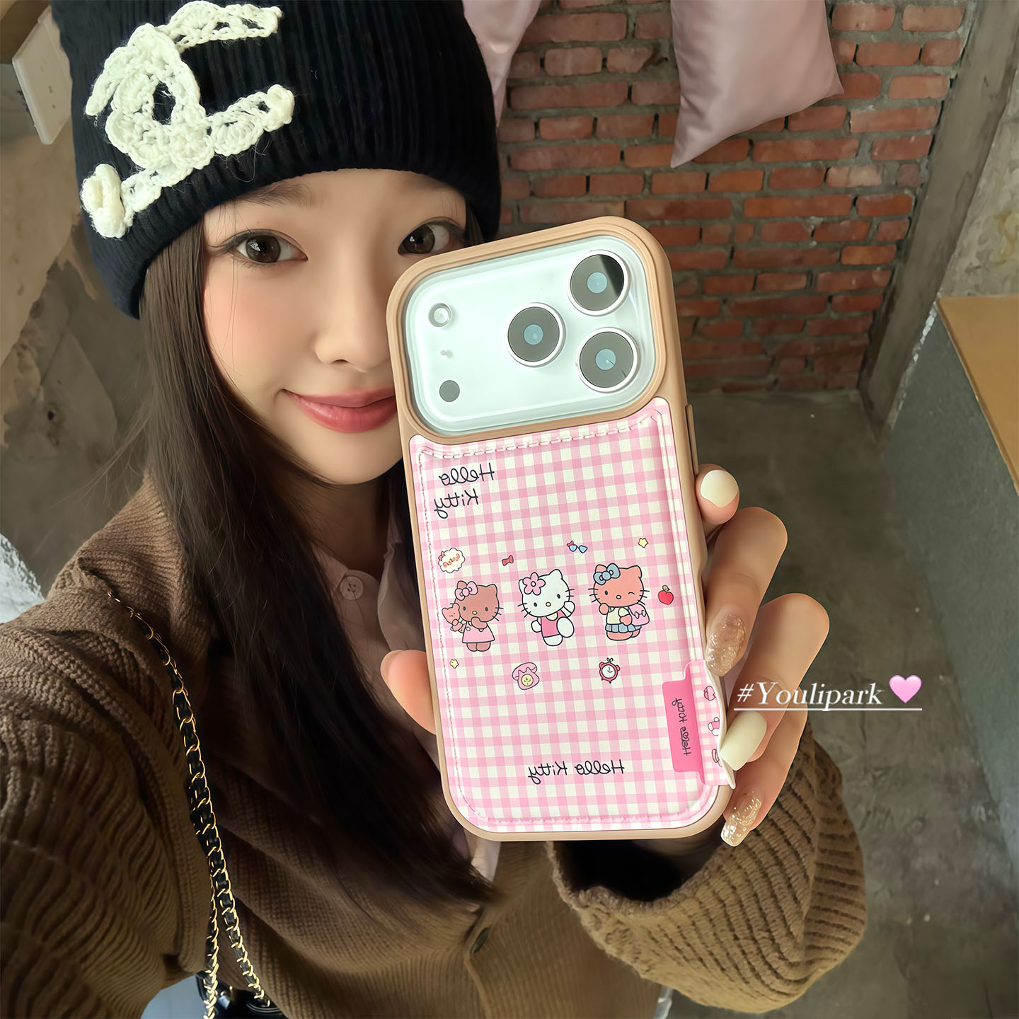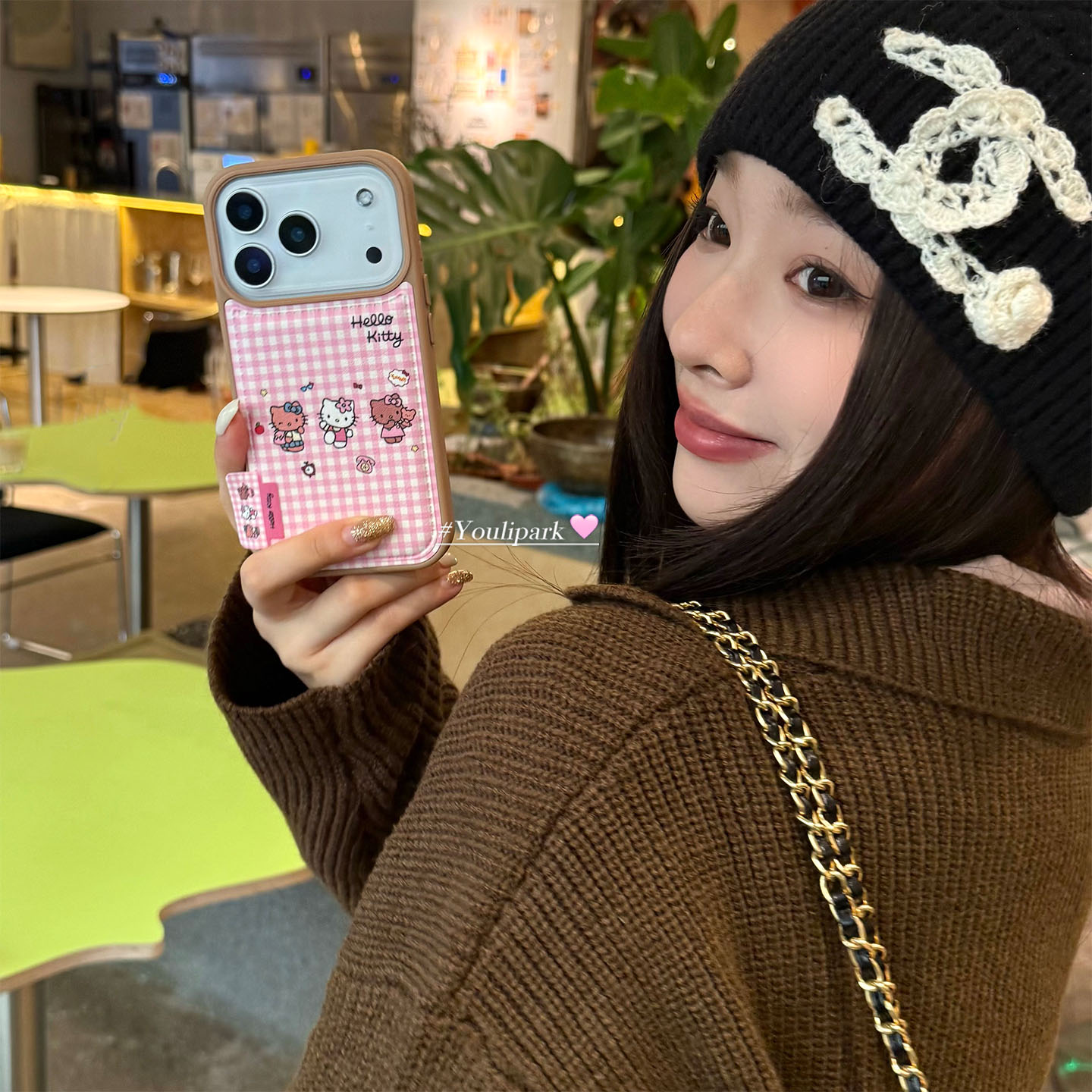 由里公园ins韩系可爱少女奶油粉格纹猫咪17适用17pro苹果17ProMax手机壳iPhone16全包14新款16Promax保护套13