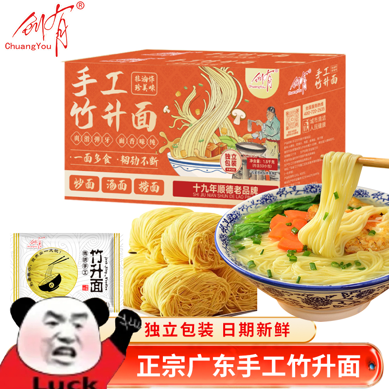 广式手工竹升面独立小包装云吞面条正宗传统手工面鸡蛋汤面非油炸