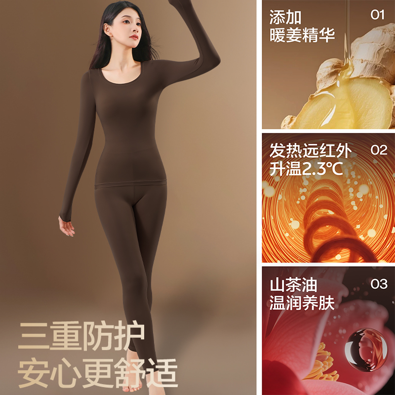 草本初色保暖内衣女薄款隐形香氛美肤肌底衣发热秋衣秋裤套装女款