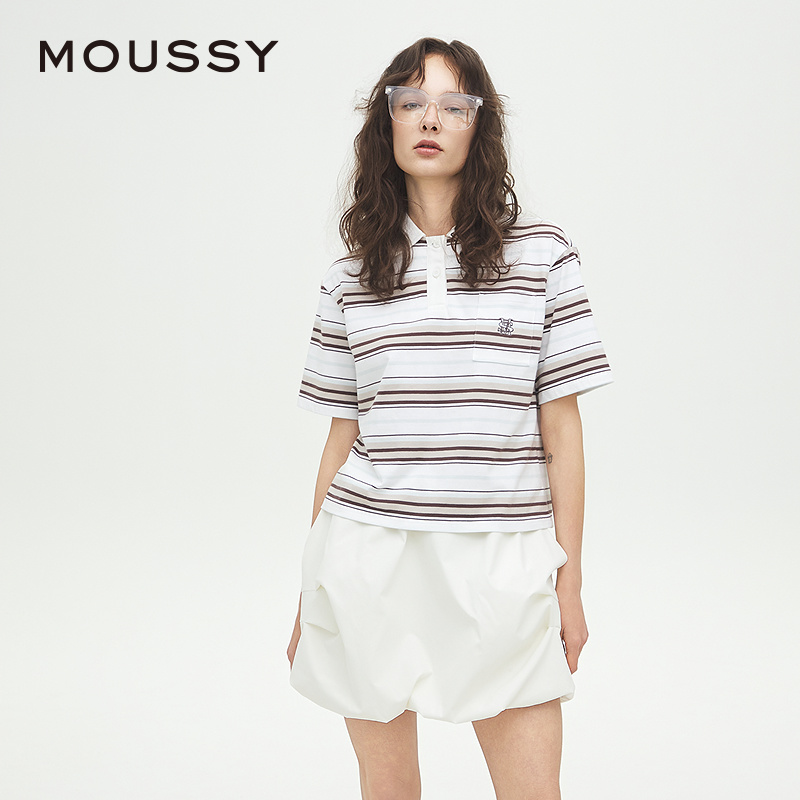 MOUSSY 2025夏季新品欧若风MIU系条纹POLO短袖T恤女028ISZ90-0831