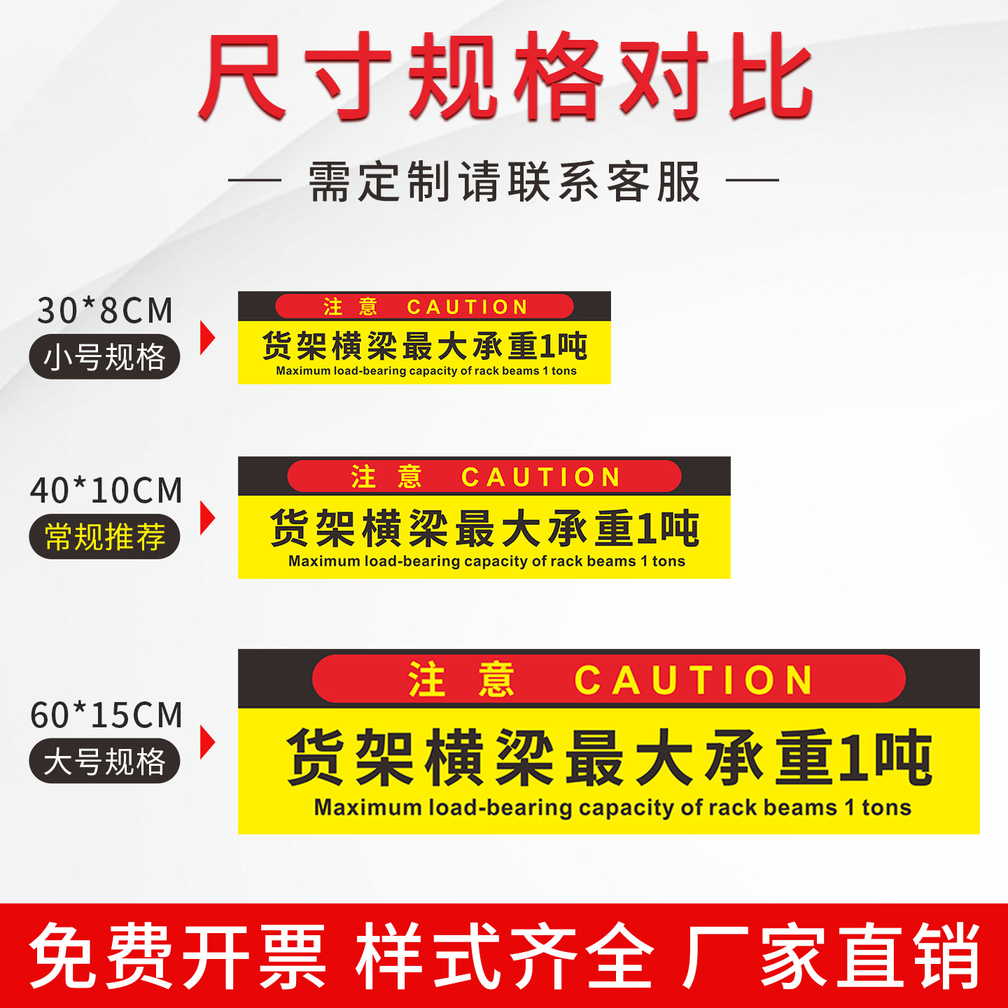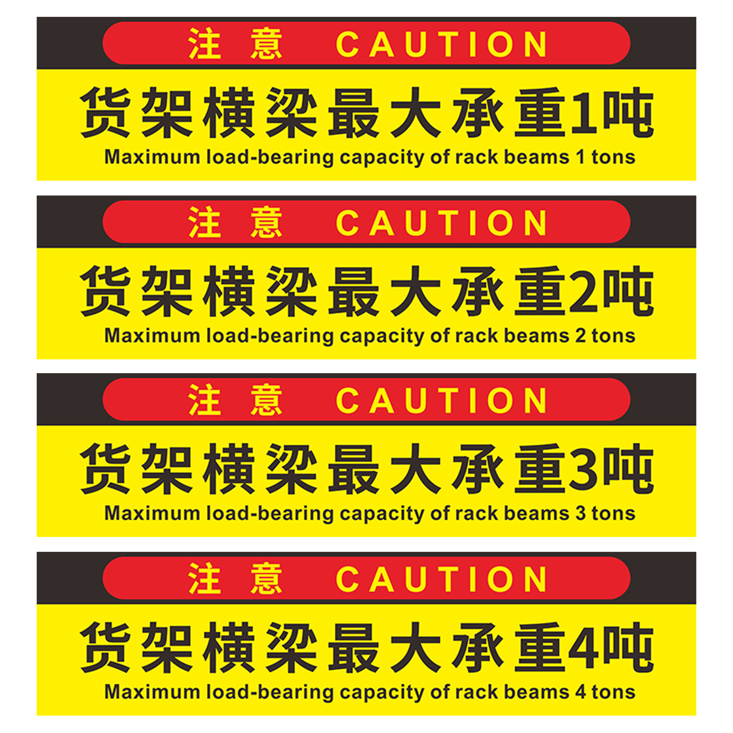货架承重标示贴货架最大承重1吨2吨3吨4吨请勿超载当心垮塌货架横梁载重平台承重限载车间仓库货架标示贴提示
