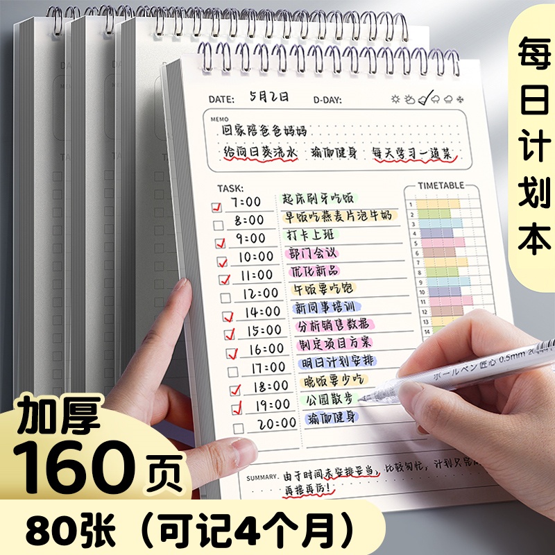 学生每日计划本学习时间管理本商务办公规划日程自律打卡本学生暑假假期学习打卡自律横线线圈本子透明封面本