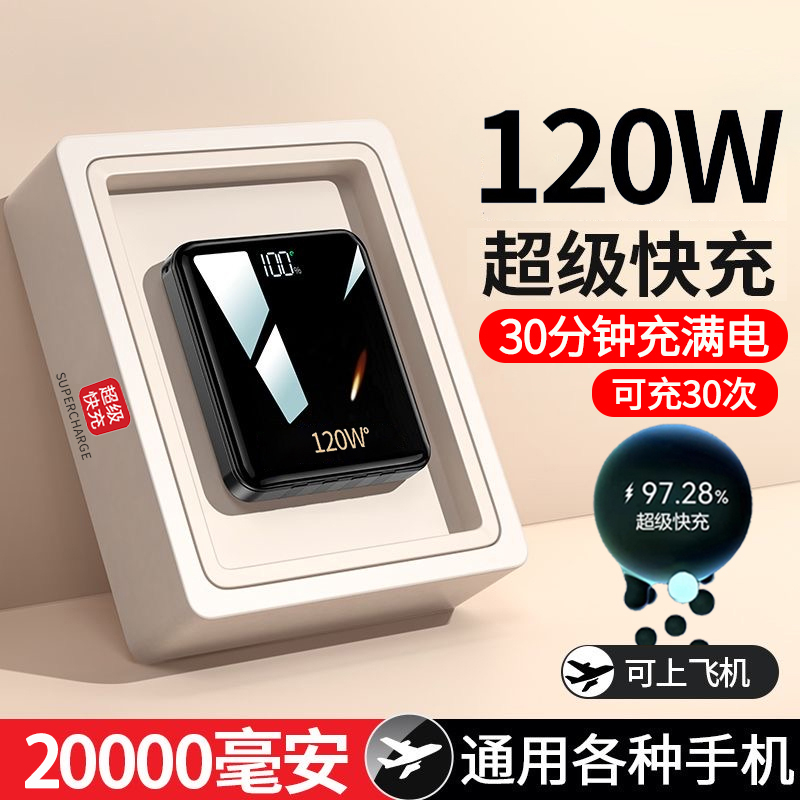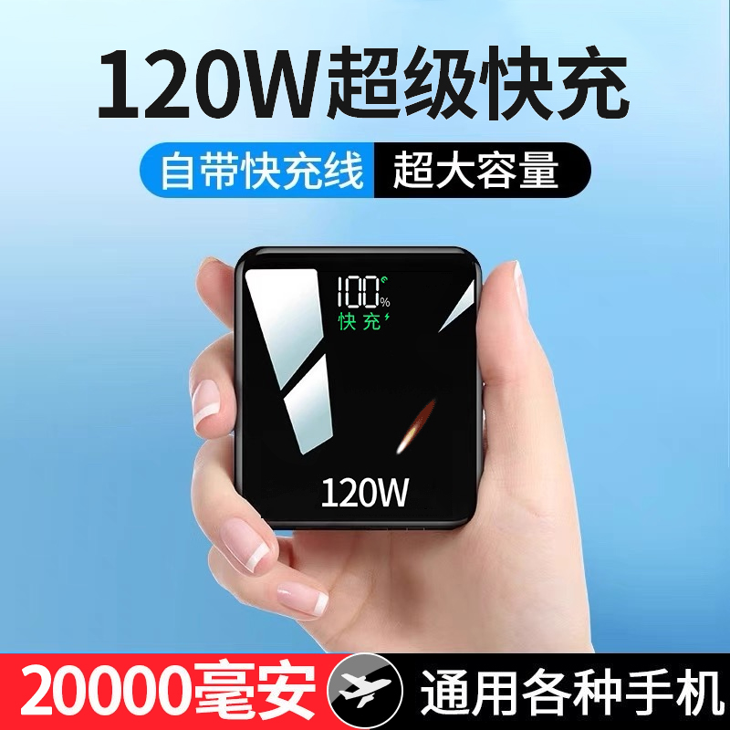 新国标3C认证2025新款超级快充充电宝大容量20000毫安超薄小巧便携自带线官方正品适用华为小米苹果专用高铁