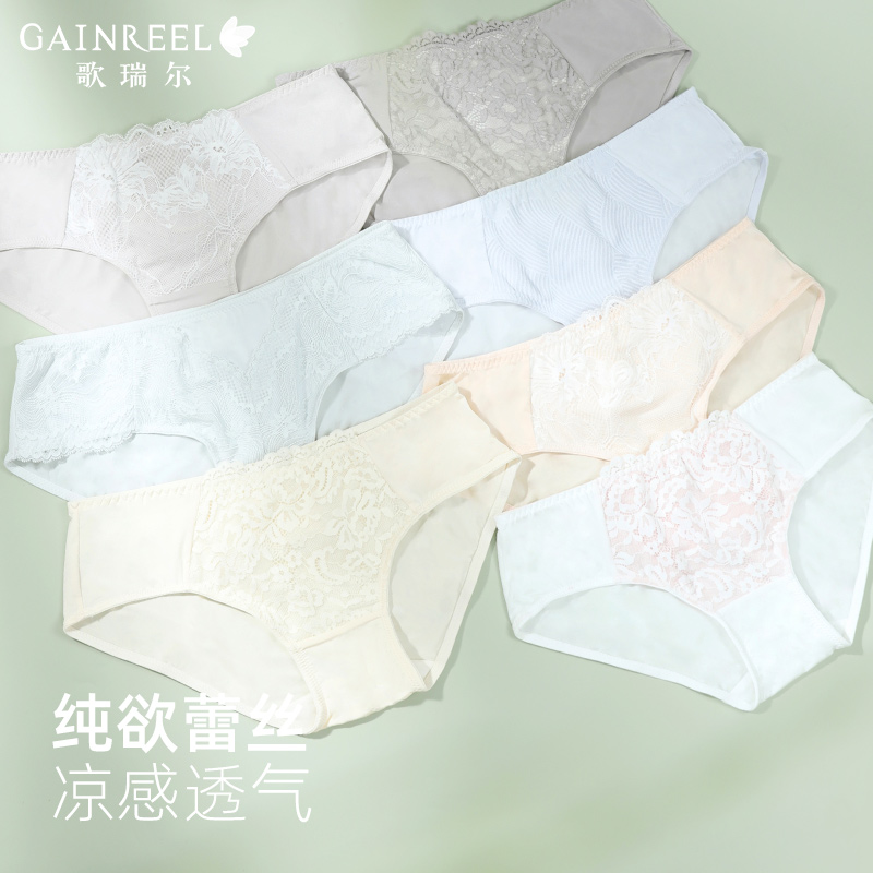 【147元起任选7条】歌瑞尔蕾丝内裤女新款性感中腰平角底裤多款