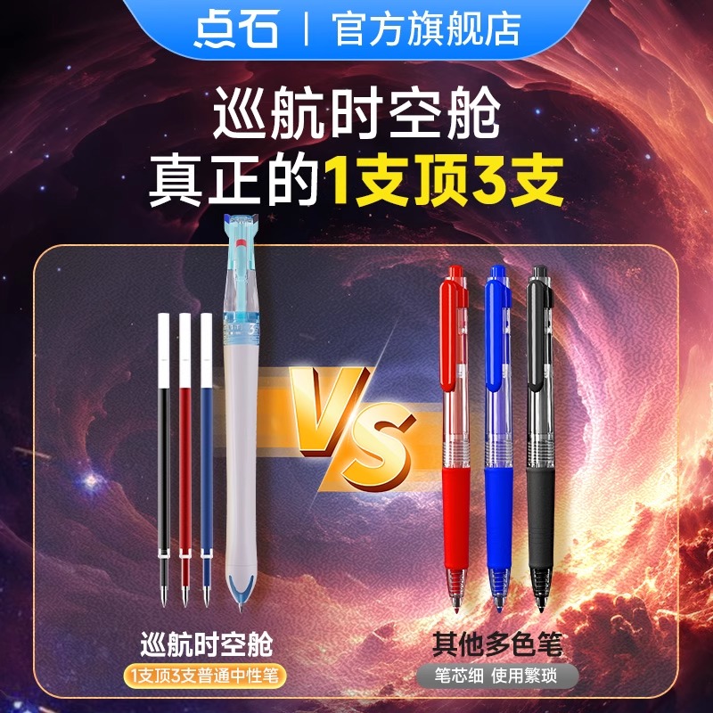 点石制笔巡航时空舱多色中性笔0.5mm黑红蓝可替芯模块笔中小学生书写标记高颜值按动三色做笔记专用笔DS-6254