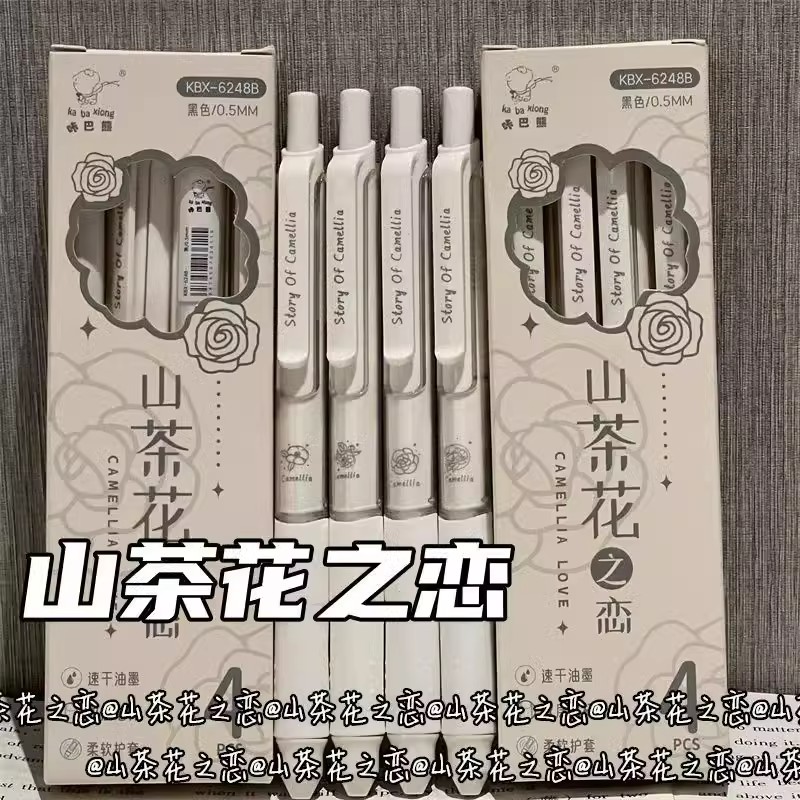 山茶花之恋按动中性笔高颜值速干刷题笔st笔头大容量ins可爱极简风黑色水笔0.5mm顺滑学生用签字笔碳素圆珠笔
