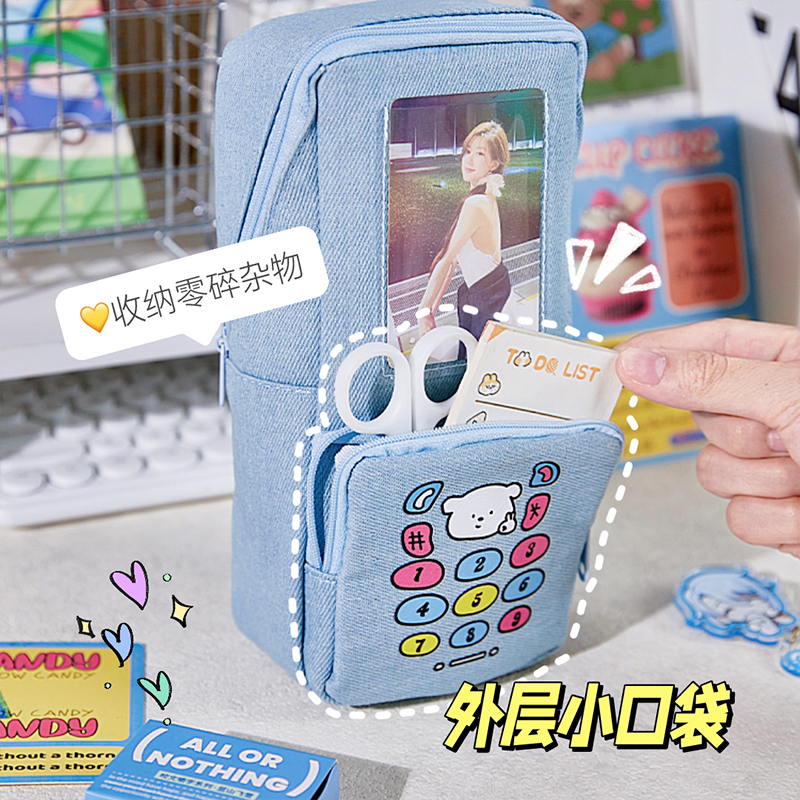 牛仔立式笔袋竖式可站立铅笔袋笔筒二合一男生女生文具盒2025年新款超火铅笔盒高颜值大容量多功能学习文具袋