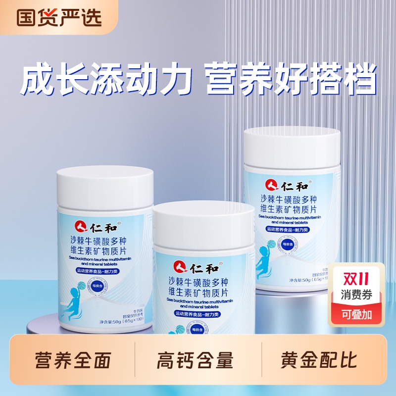 仁和牛磺酸多维生素矿物质钙铁锌补钙长高儿童青少年官方正品