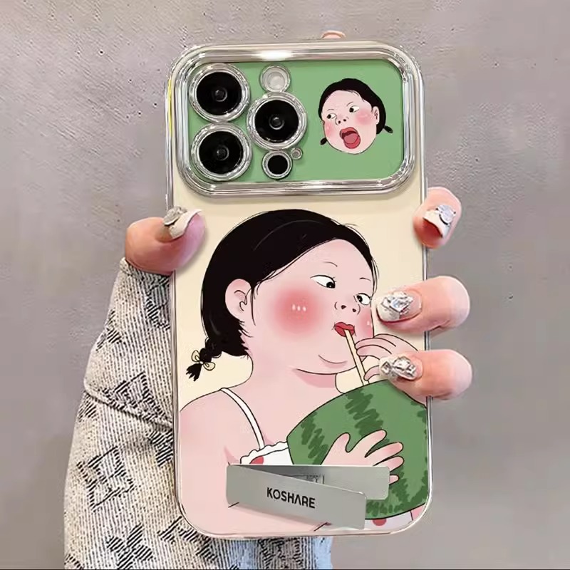 蛮舟适用苹果15promax手机壳西瓜女孩iphone14pro保护套电镀大视窗13带支架手链12新款女11创意xr个性xs防摔x