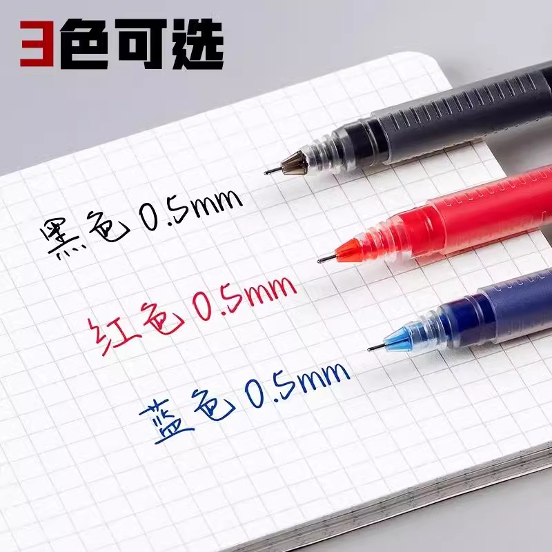 得力直液式走珠笔速干大容量直液笔0.5黑色中性笔学生用速干刷题笔水性笔直液笔圆珠笔商务办公简约风笔杆