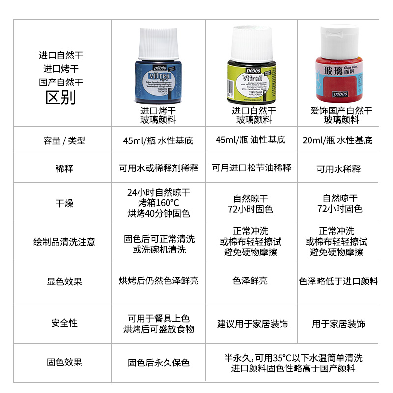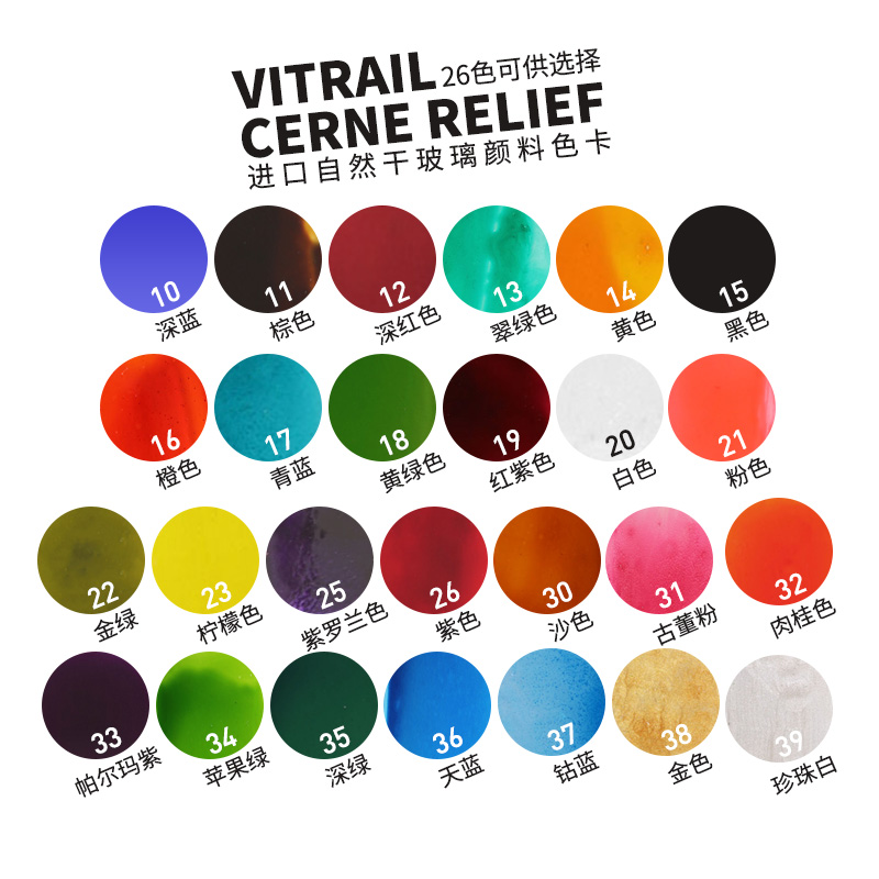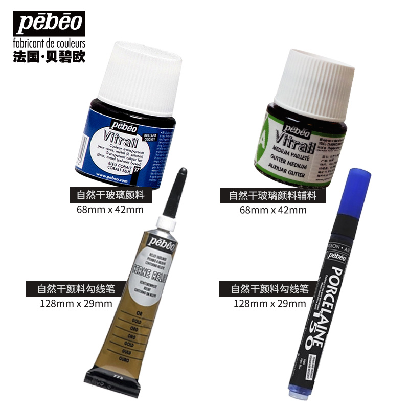 贝碧欧进口玻璃画颜料26色自然干非烤干玻璃颜料 法国透明清澈手绘装饰颜料玻璃窗彩半透明免烤速干玻璃颜料