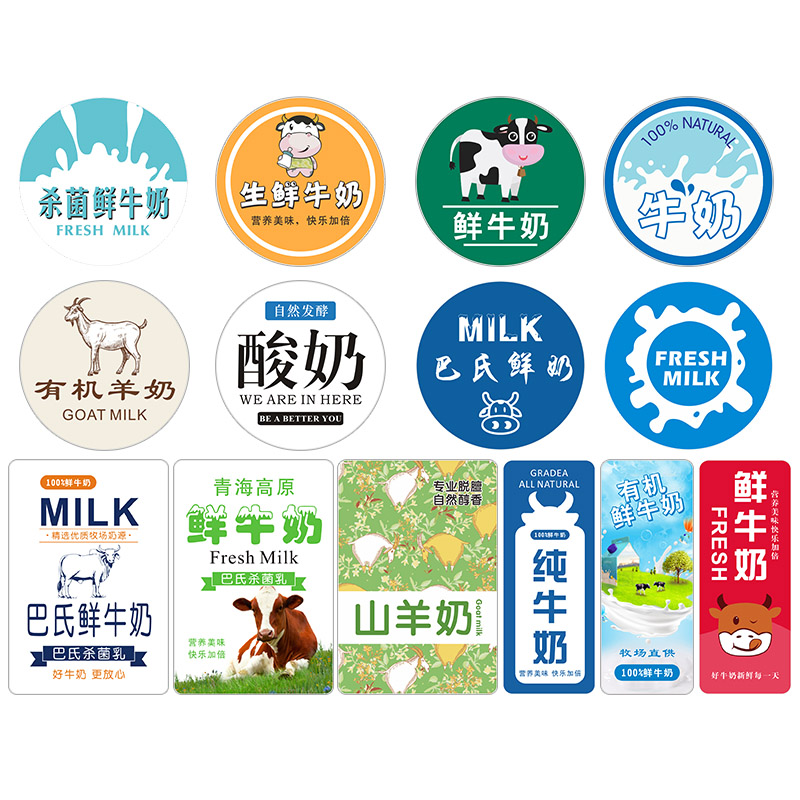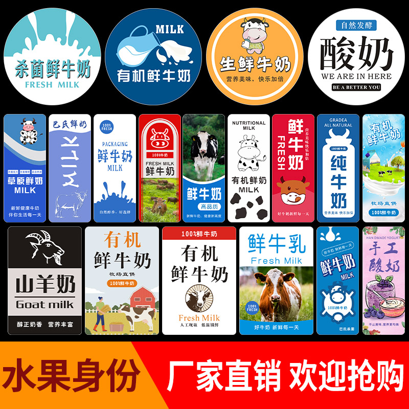 奶类标签贴纸有机纯奶山羊奶牛奶酸奶饮品专用盒贴不干胶商标定制