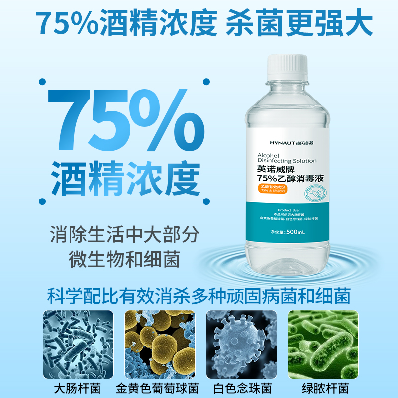 海氏海诺酒精75度消毒液家用大瓶装皮肤伤口杀菌清洁免洗手乙醇