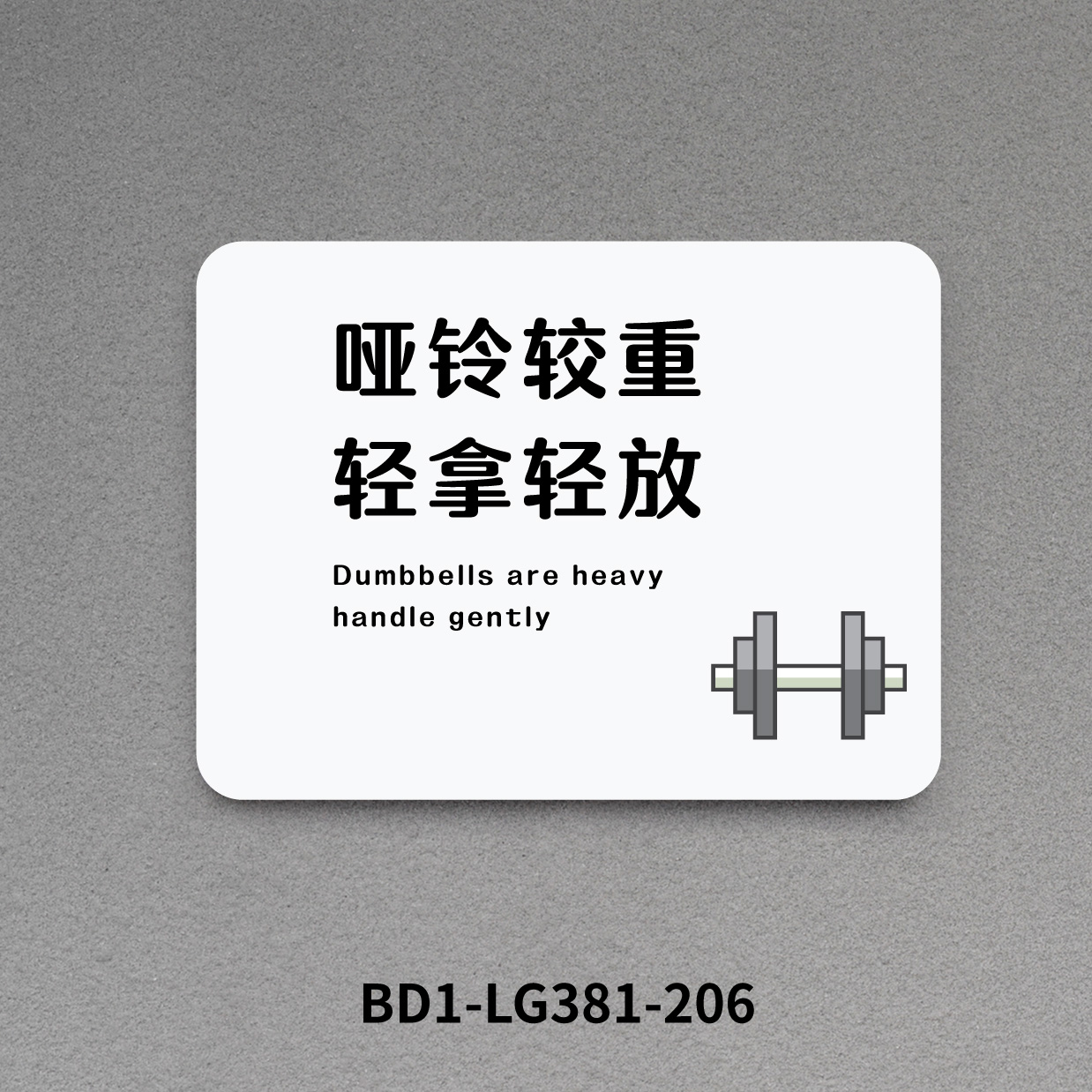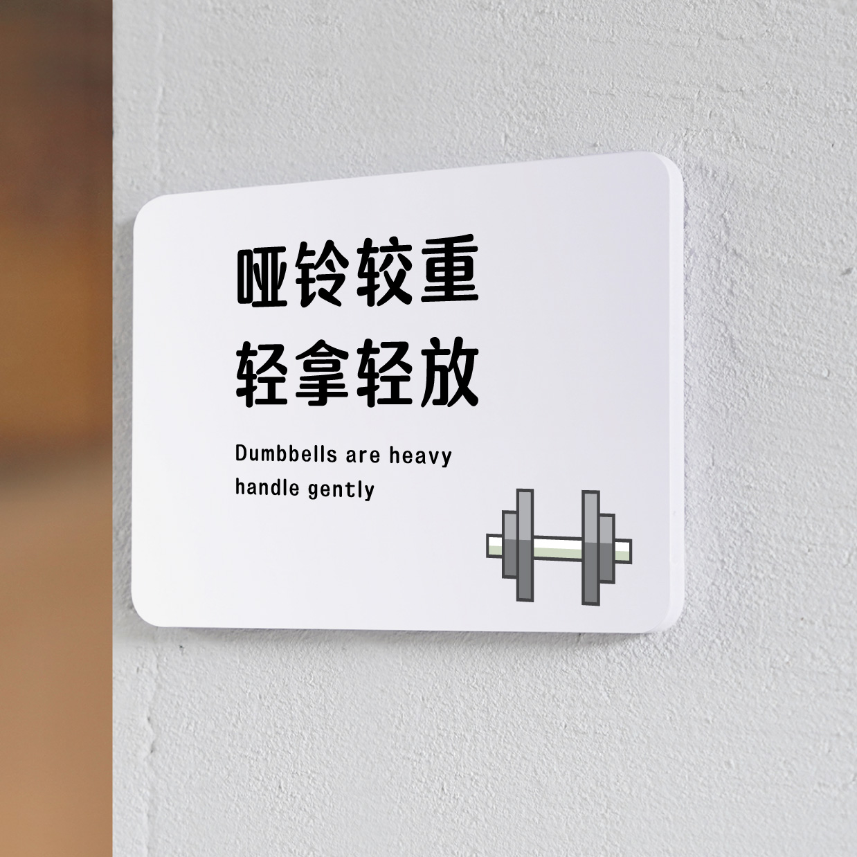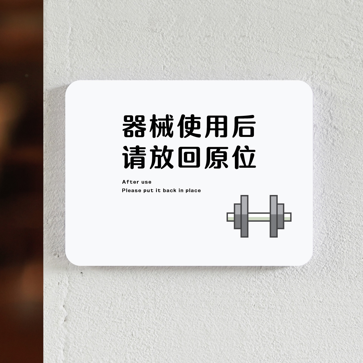 健身房器械归位温馨提示牌健身馆使用完器械请放回原位标识牌健身器材哑铃较重轻拿轻放请将器材归位指示牌贴