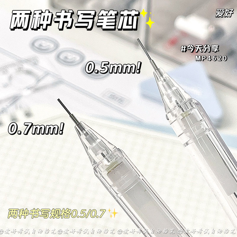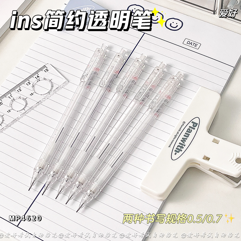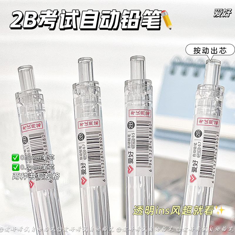 爱好2B自动铅笔简约ins风透明自动铅笔透明笔杆0.5/0.7mm自动笔2B自动铅笔小学生专用铅笔芯不易断芯