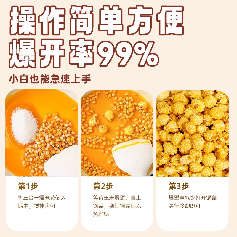 三合一爆米花球形奶油焦糖自制老式电影院自己爆原材料专用玉米粒