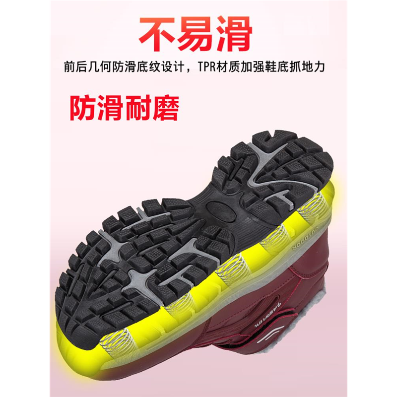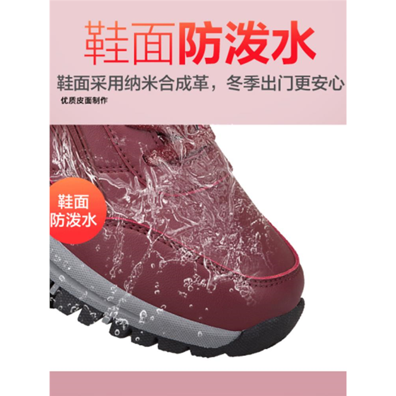 寿足力老人健步鞋男士爸爸冬季皮面加绒中老年棉鞋舒适软底休闲鞋