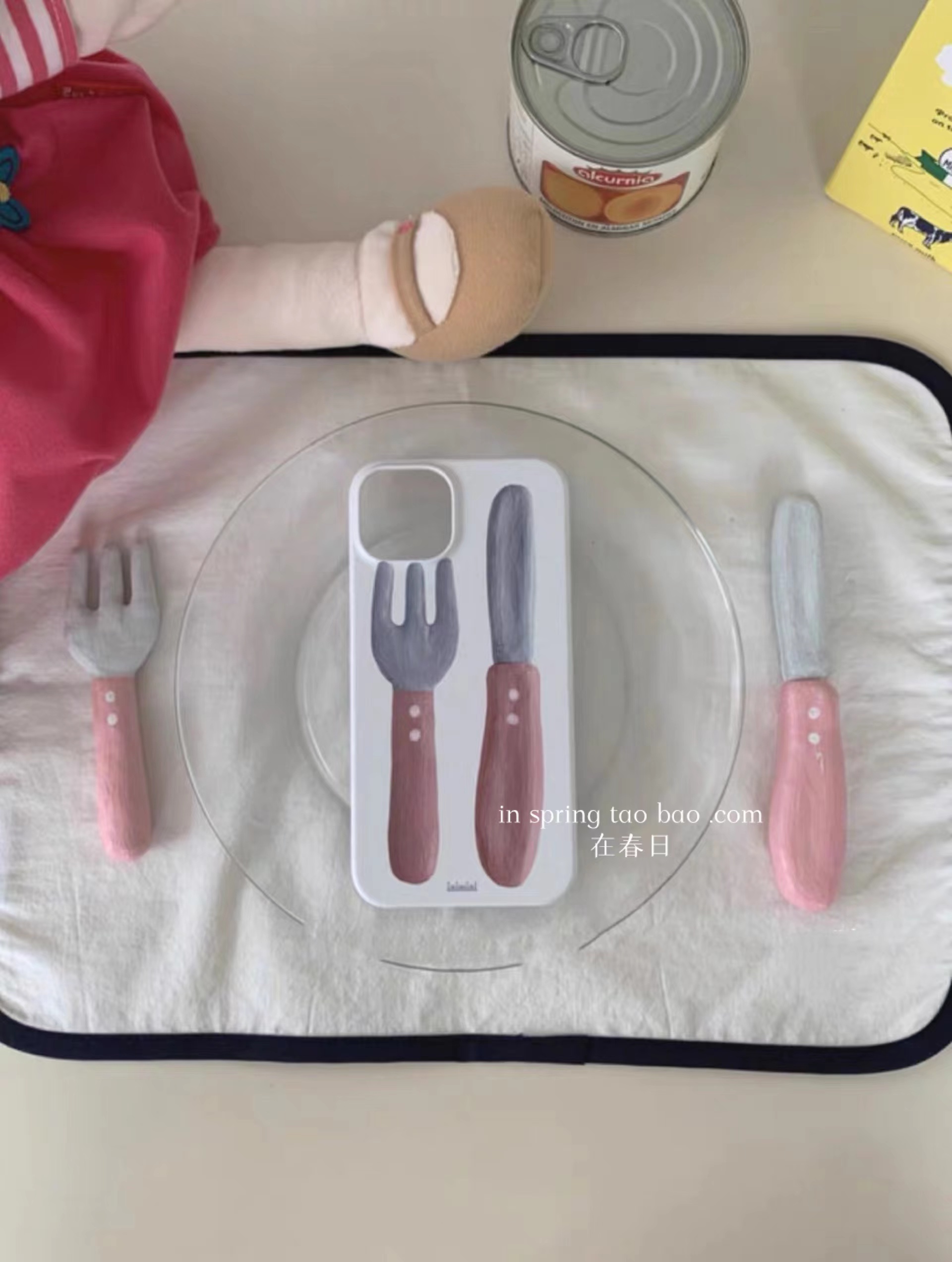 小众可爱粉色刀叉手机壳适用苹果14promax/13菲林壳iPhone12/14pro/11情侣15新款16promax女生17promax/15pro