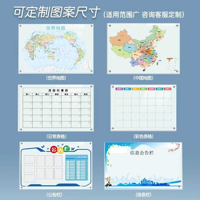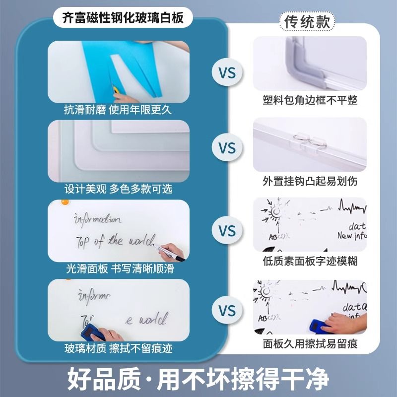 磁性钢化玻璃白板办公会议黑板家用教学培训写字板挂式留言板可擦