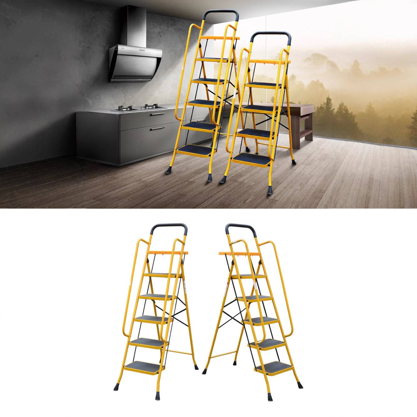 家用折叠人字梯托盘扶手可拆卸八字脚铁梯室内楼梯颜色可修改
