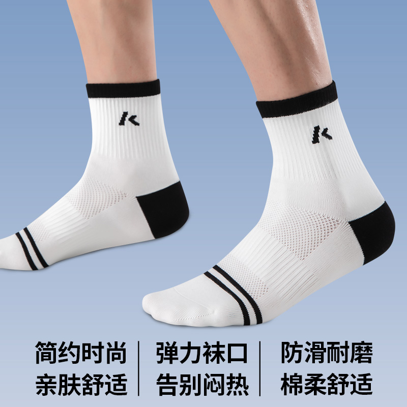 25年川崎运动袜条纹男款跑步运动羽毛球袜常规底纯色含棉透气亲肤