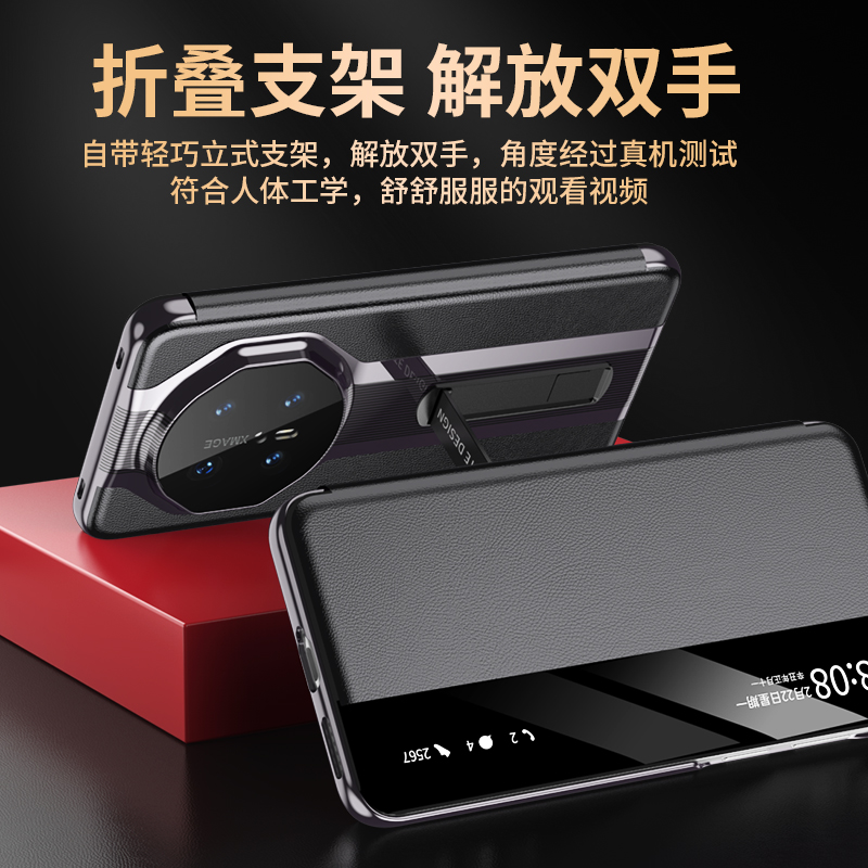 适用于华为mate70RS手机壳视窗智能秒变支架mete70pro+翻盖休眠真皮超跑双面保护皮套PLA一AL10全包PLR摔牛皮