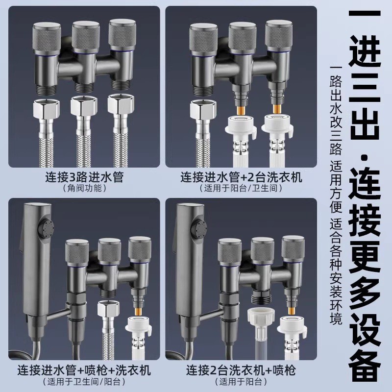 角阀一进三出洗衣机龙头四分自动止水阀多功能三控四通分水阀开关