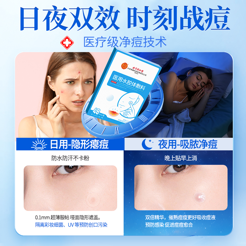 北京同仁堂医用痘痘贴修复痘印消炎医用水胶体敷料人工皮祛痘吸脓