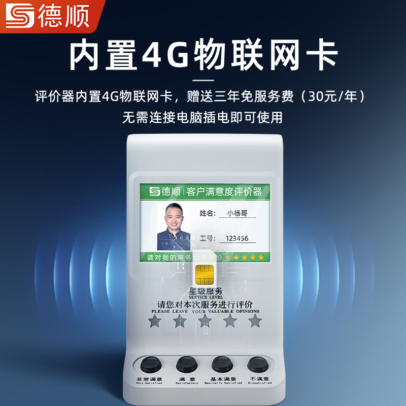 德顺704评价管理评分器4G联网评价器满意度好差评服务液晶评价器
