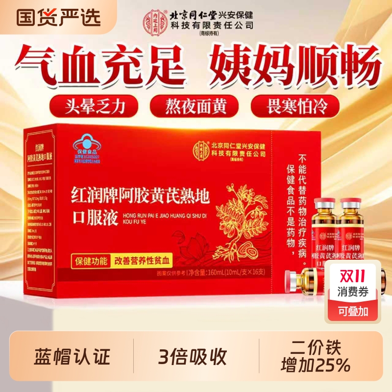同仁堂阿胶黄芪补血口服液女人补气血饮养血铁剂当归贫性调理补铁