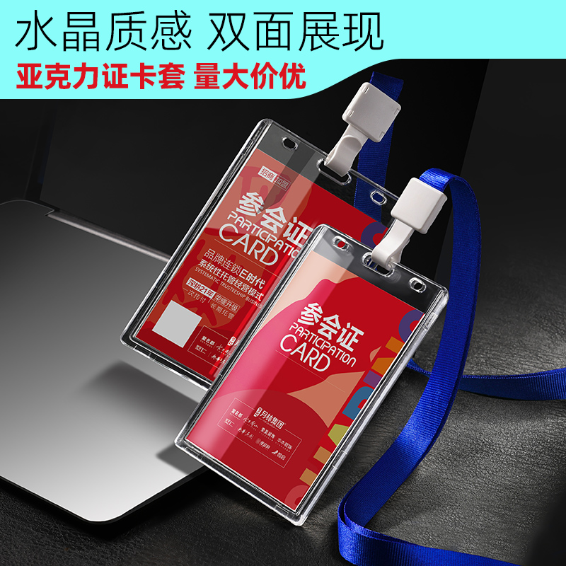 优和大号亚克力透明胸卡挂牌工作证件卡套带挂绳员工证件套门禁工牌定制厂牌胸牌展会证硬卡套学生校牌卡套