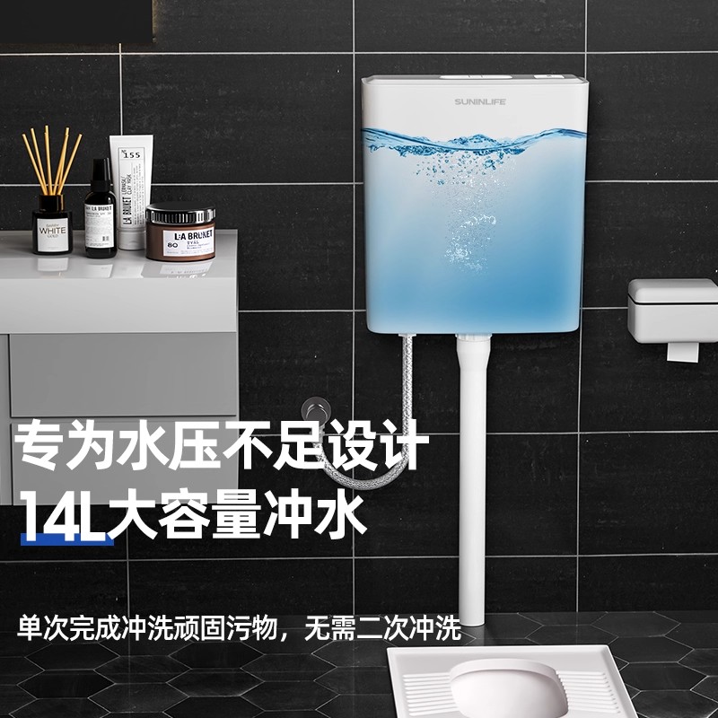 厕所冲水箱家用卫生间蹲坑抽水马桶蹲便器节能挂墙式大冲力套装
