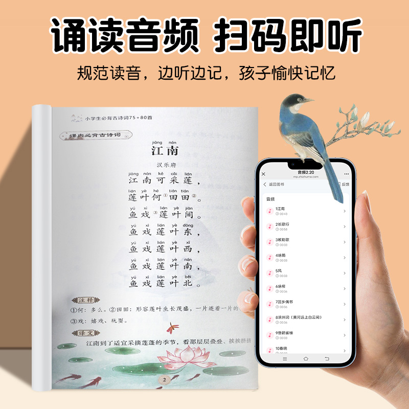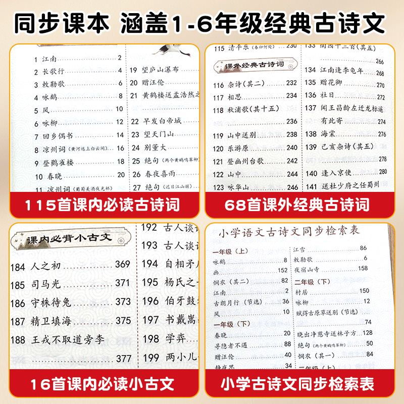 小学生必背古诗词75首十80首 一到六年级必背古诗人教版1-6年级正版全集文言文小学生语文必备教辅唐诗三百首注音版包含129篇169首