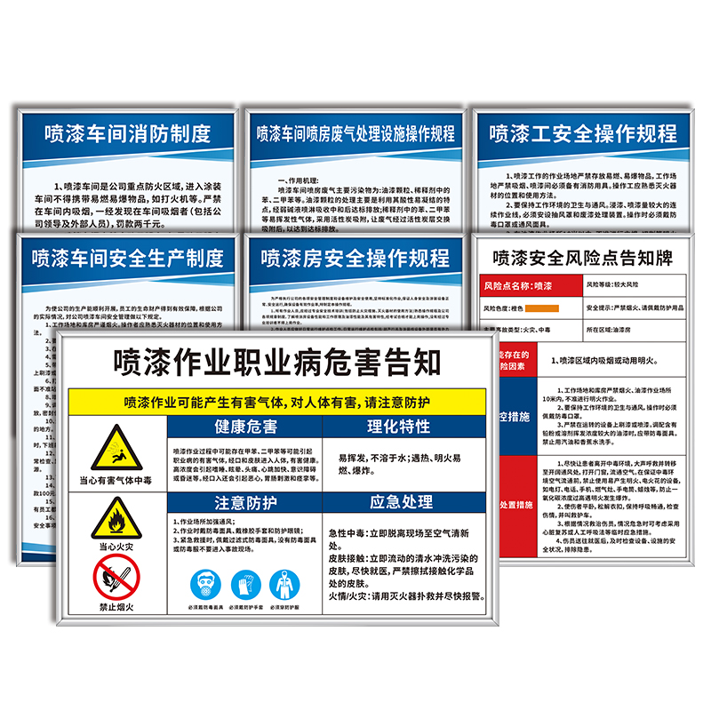 喷漆车间房安全操作规程上墙风险点作业职业病危害告知牌工厂消防安全生产制度牌定做废气处理设施标识牌贴纸