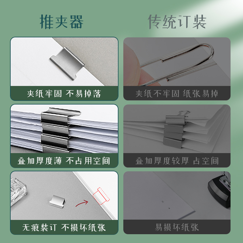 得力纽赛推夹器无痕订书器高颜值小夹子试卷文件固定器金属票据夹