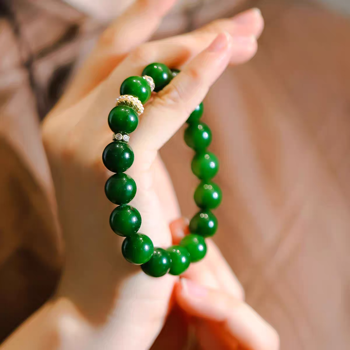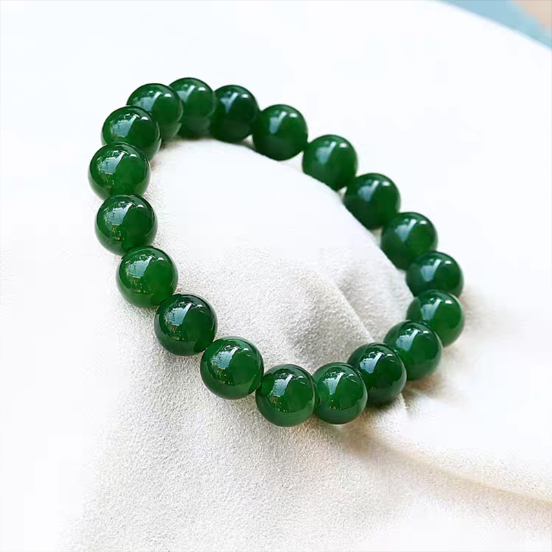 和田玉平替散珠碧玉俄料菠菜绿圆珠子单珠手串珠配珠原创原创手串