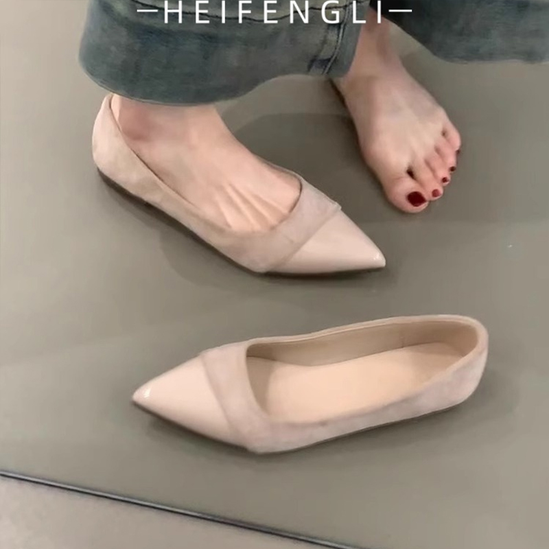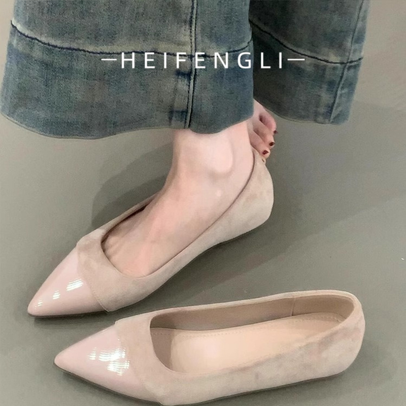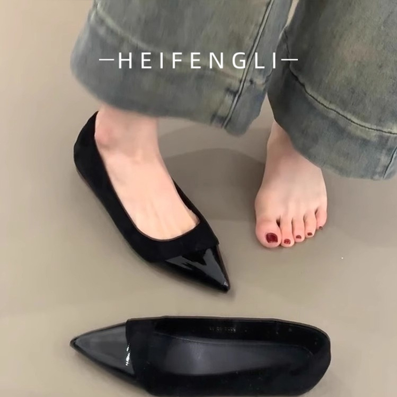 法式平底尖头内增高单鞋女2025春季新款配裙子拼接通勤女鞋浅口