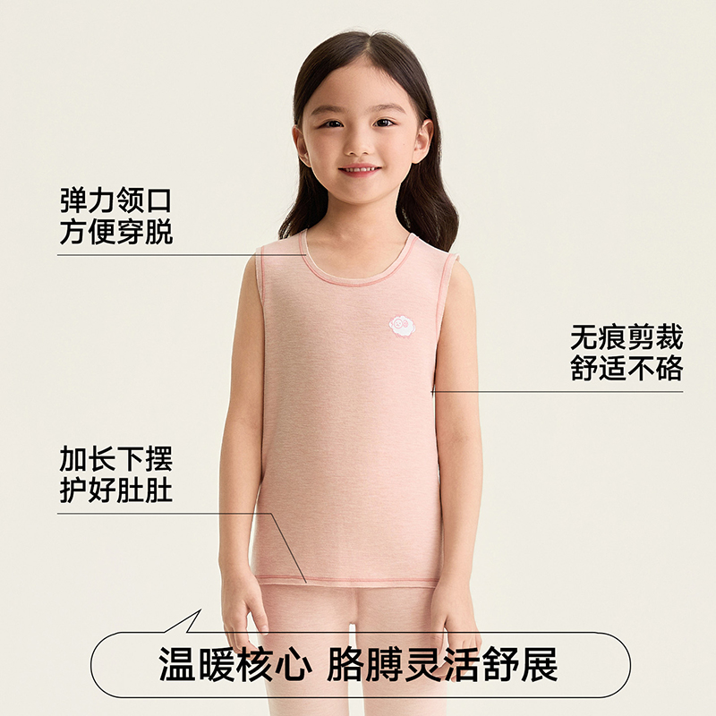 松山棉店小暖羊儿童含羊毛背心无痕护肚子大童男女新款保暖上衣